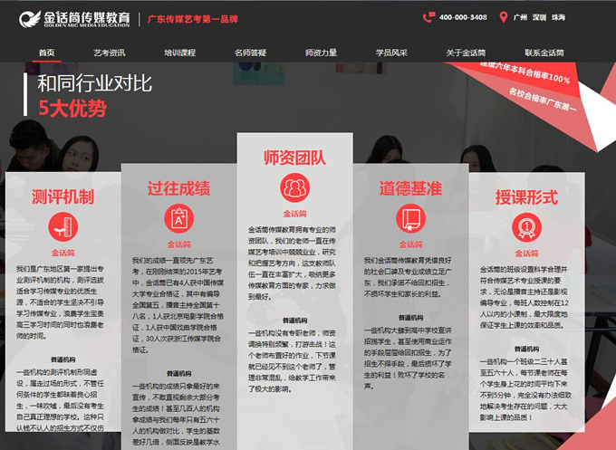 关于咱们金话筒的特别优势呀、课程安排呀、机构视频呀大家都可以尽收眼底。特别要跟大家介绍的是这一页: